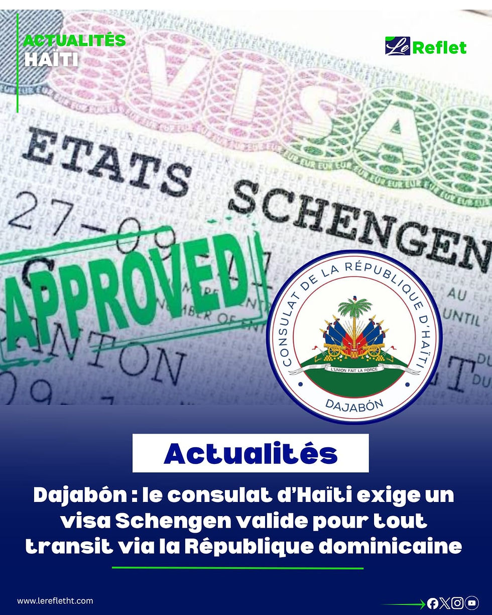 Le Consulat de la République d’Haïti à Dajabón a annoncé, dans un avis officiel publié le jeudi 9 avril 2026, que les voyageurs détenteurs d’un visa Schengen transitant par la République dominicaine ont l’obligation de s’assurer de la validité effective de leur visa avant de se présenter à la frontière, afin d’éviter tout blocage lors des formalités migratoires.